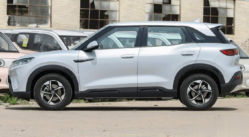 作为一台小型SUV,比亚迪元UP碍于车身尺寸的表现(4310mm车身长度),从侧身看上去,该车的体量较小,但是在设计感上,它却一点也不含糊,像车顶方面,该车便采用了悬浮式的车顶设计,且门把手也是采用了半隐藏式的设计,配合小尺寸的运动轮毂,让其整体的运动属性得到了展现,并且在侧裙方面,该车也是采用了和前包围一样的设计,让车辆的整体感更强。
